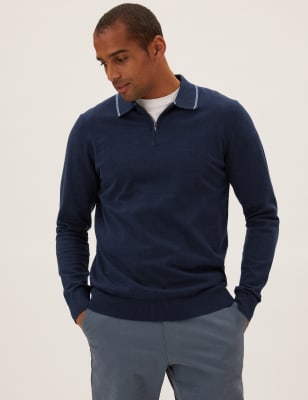 Cotton Rich Zip Neck Knitted Polo Shirt M S Collection M S